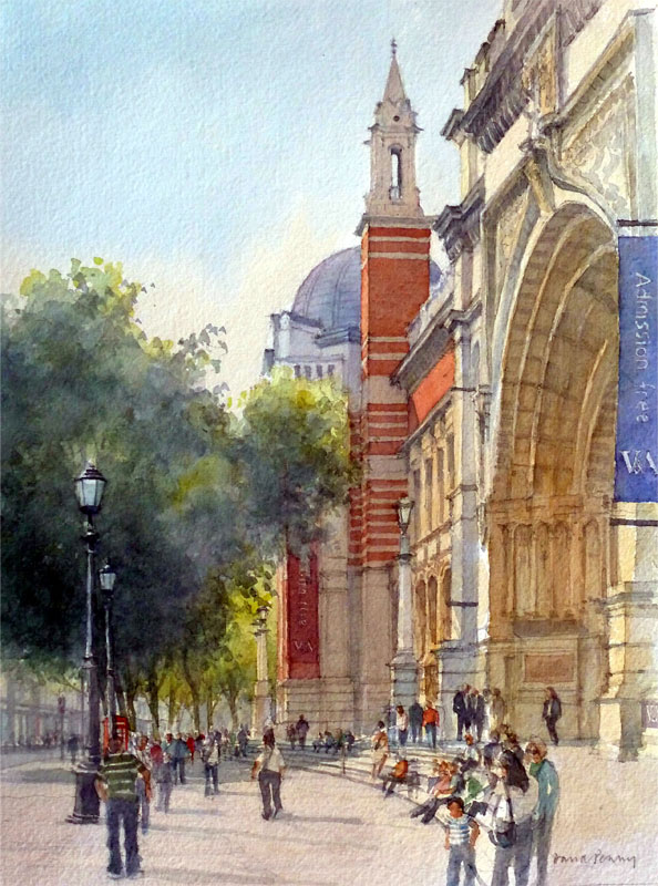 One of the principal aims of the Group is to record the life and spirit of the River – I do try to look for ‘moments in time’ when selecting subjects, though I will be tempted by the more timeless subject matter still available. It doesn’t matter too much to me if people are around when painting (though the South Bank can be impossible if the tide is up) but I am wary of conversations starting with “I’m an artist too”………