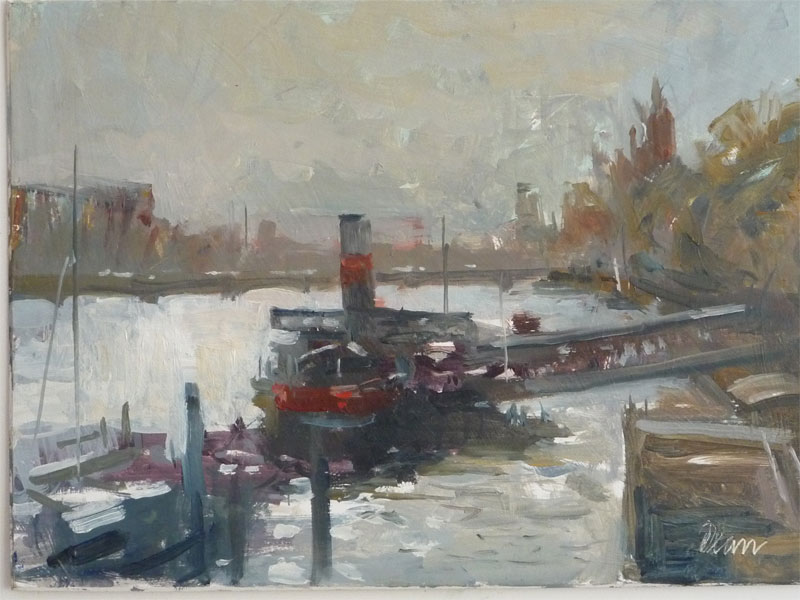 Started painting 1986 when made redundant. Learned to paint by reading everything, studying other painters’ work and learning on the job. Inspired by Walter Sickert, Ruskin Spear and early Victor Pasmore.