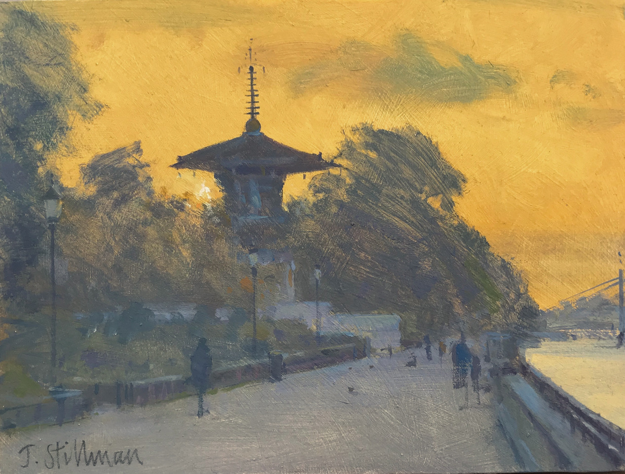 John’s paintings capture the delicacy and beauty of light and atmosphere across a wide range of subjects including landscapes of Surrey and scenes from around the River Thames, which he paints alongside fellow members of the prestigious Wapping Group of Artists, to which he was elected a full member in 2009.