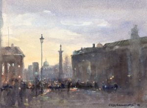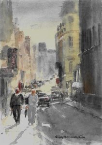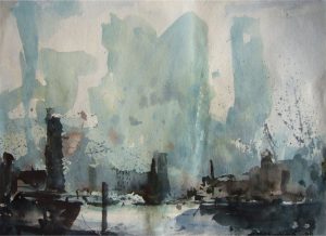Roy’s preferred image size is around 8 or 10 x 6 inches. When painting he does not do detailed drawing, but moves to the brush as soon as possible. His paintings sometimes undergo considerable changes as they develop; starting with transparent washes and using bodycolour for highlights. He prefers to have his subject some distance away from him so that he can concentrate on capturing the atmosphere and the general feel of the subject. Like many plein-air artists he likes to let his pictures settle and views them later in a different light. This can lead to small but decisive changes and, occasionally, to radical alterations.