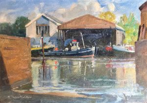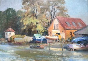 Michael Shepherd (then Art Critic of The Sunday Telegraph) wrote in 1972 : “…the work of Trevor Chamberlain has shone out for me with its remarkable liveliness of almost breathable air and flickering light. Anyone who dotes on Boudin may feel a kindred spirit here. He is one of the best exemplars of the merits of working from life in the open air.”